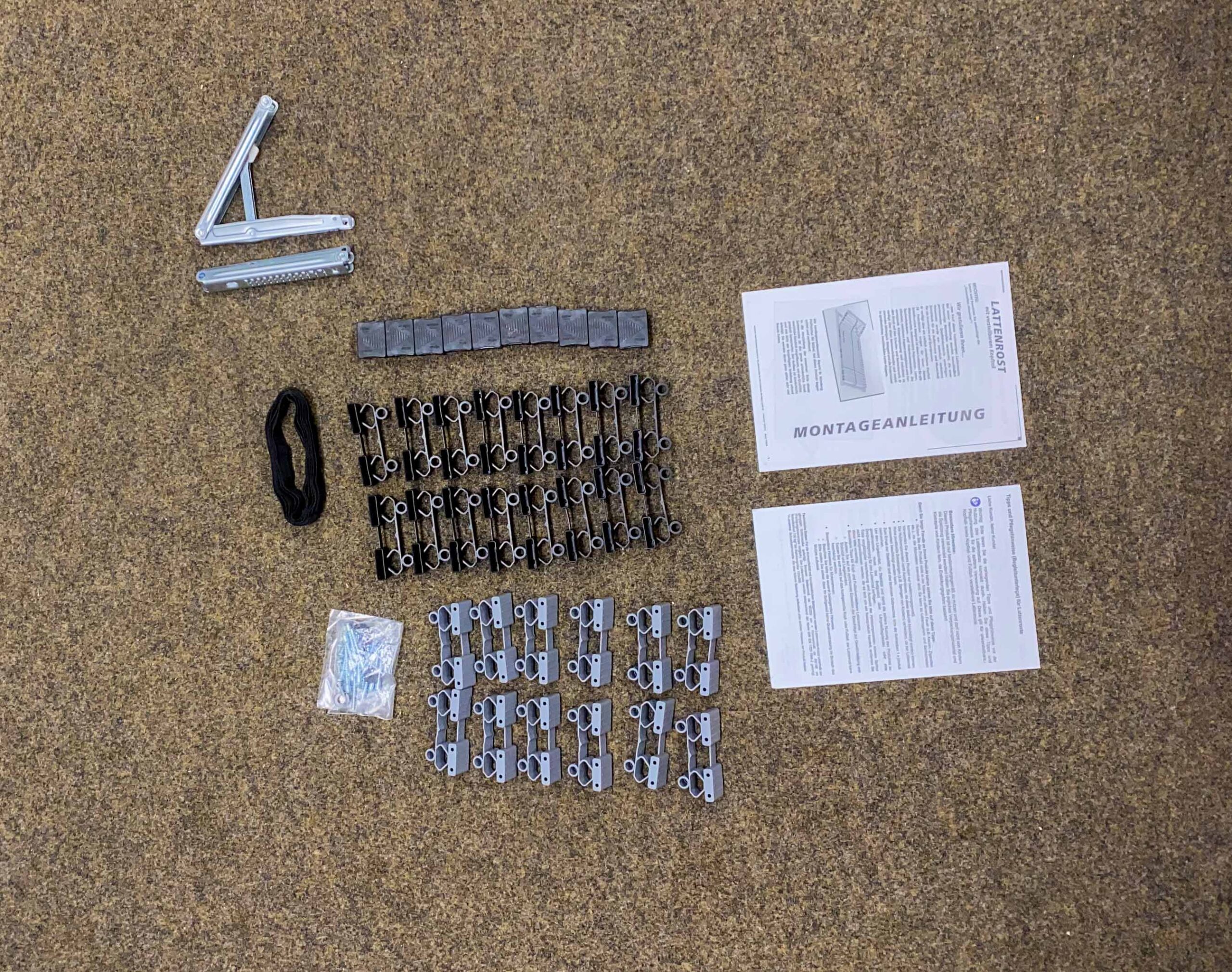 Nach dem Auspacken des Lattenrostes trat zunächst ein leicht erschwerte Anleitung zum Vorschein. Diese ist ein wenig irreführend durch ungenaue Bilder und andere Illustrationen der Anordnung der Latten. Hier taten wir uns ein bisschen schwer – die Anleitung könnte vereinfacht werden.