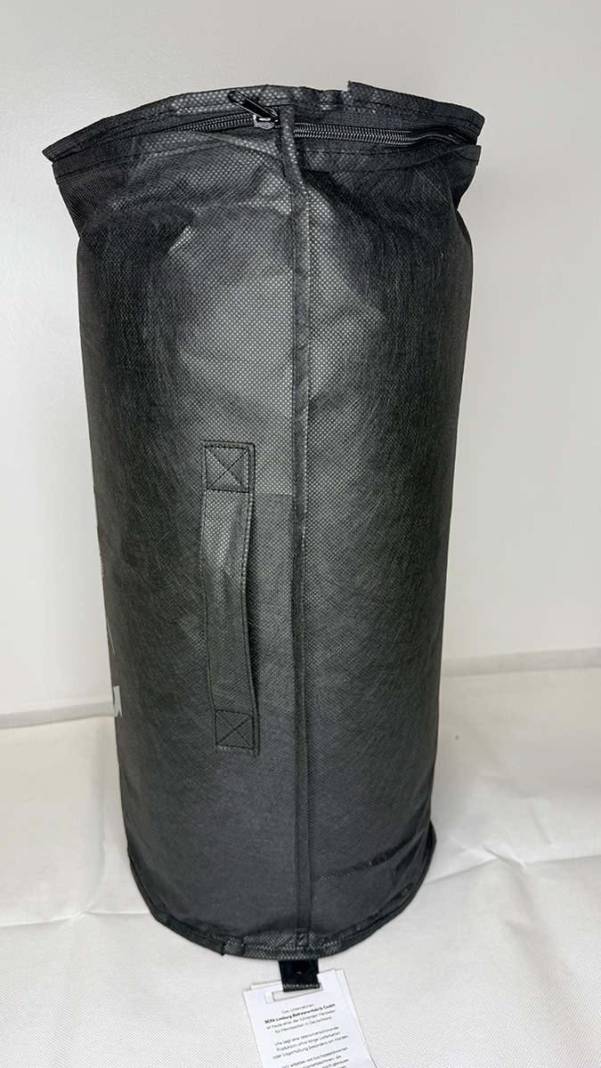 Die BEFA Kamelhaar Bettdecke kam gut und sicher verpackt in einem Karton an. Die Decke an sich befand sich in der praktischen Tragetasche, wie rechts auf dem Bild zu sehen ist. Diese lässt sich mittels eines Reißverschlusses öffnen und gewährt somit ein leichtes und sicheres Herausnehmen der Bettdecke.
