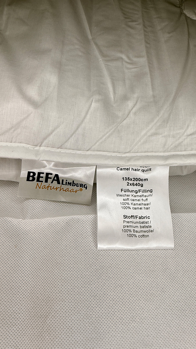 Die Naturhaar Bettdecke von BEFA bestehend aus Kamelhaar ist vollständig angekommen.