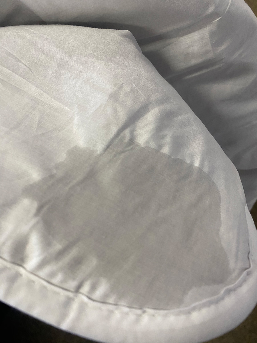 Zum Test der Feuchtigkeitsabsorption haben wir einen Zipfel der Bettdecke mit Wasser angefeuchtet und nach 30-40 Minuten wieder danach gesehen. Nach Ablauf der Zeit war keine Spur mehr von Feuchtigkeit zu sehen – daher können wir davon ausgehen, dass die Feuchtigkeitsabsorption der Kamelhaardecke gut ist.