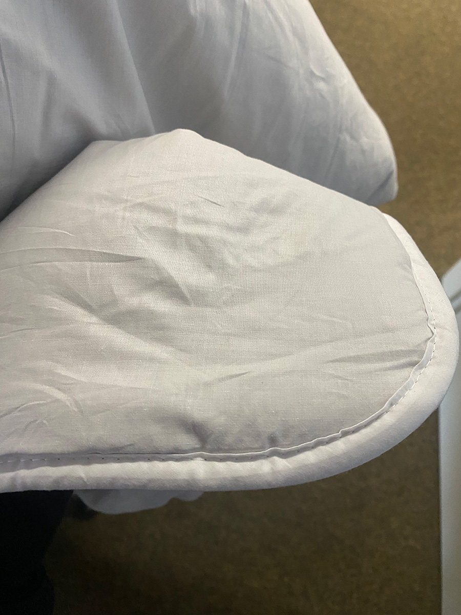 Die Verarbeitung wirkt auf den ersten Blick sehr gut. Einzig die Beschädigung an einer der Tragetaschen fällt negativ ins Gewicht. Die Kamelhaarbettdecken selbst sind unbeschädigt und auch bei näherer Betrachtung der Nähte unbeschädigt. Auch die kaputte Tragetasche lässt sich mit der Beschädigung noch verwenden und kann man wahrscheinlich auch nähen, da es an der Naht gerissen ist, sollte aber natürlich nicht vorkommen.