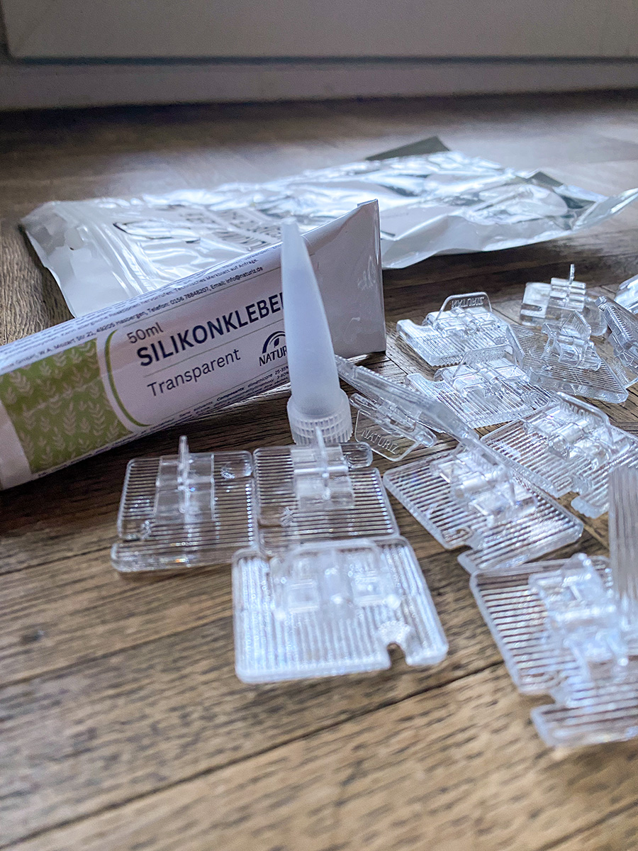 Die Online-Bilder geben einen guten Eindruck, jedoch entspricht die Darstellung des Silikonklebers auf den Bildern nicht dem realen Produkt. Auf dem Video sieht der Kleber jedoch aus wie in echt.