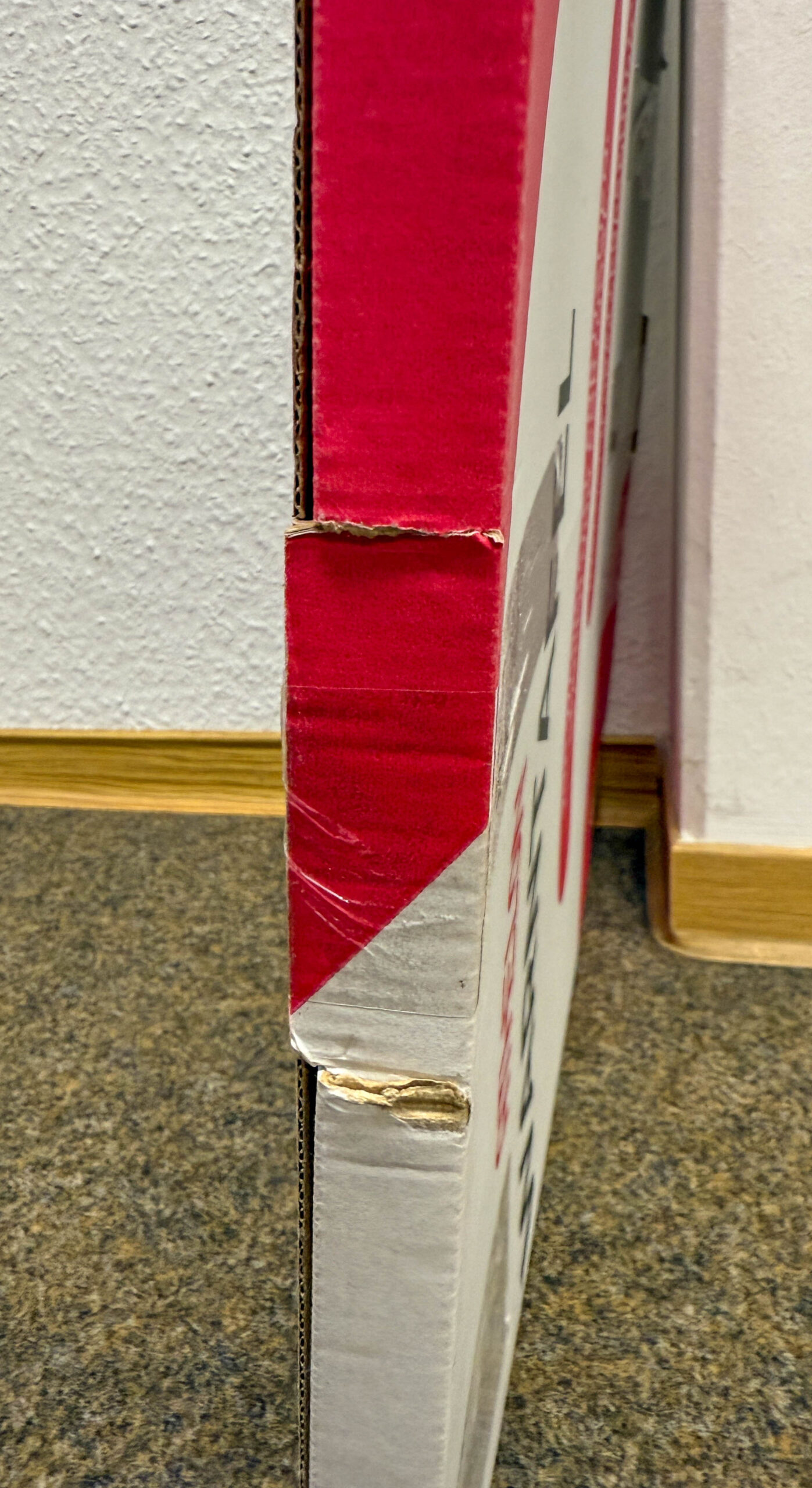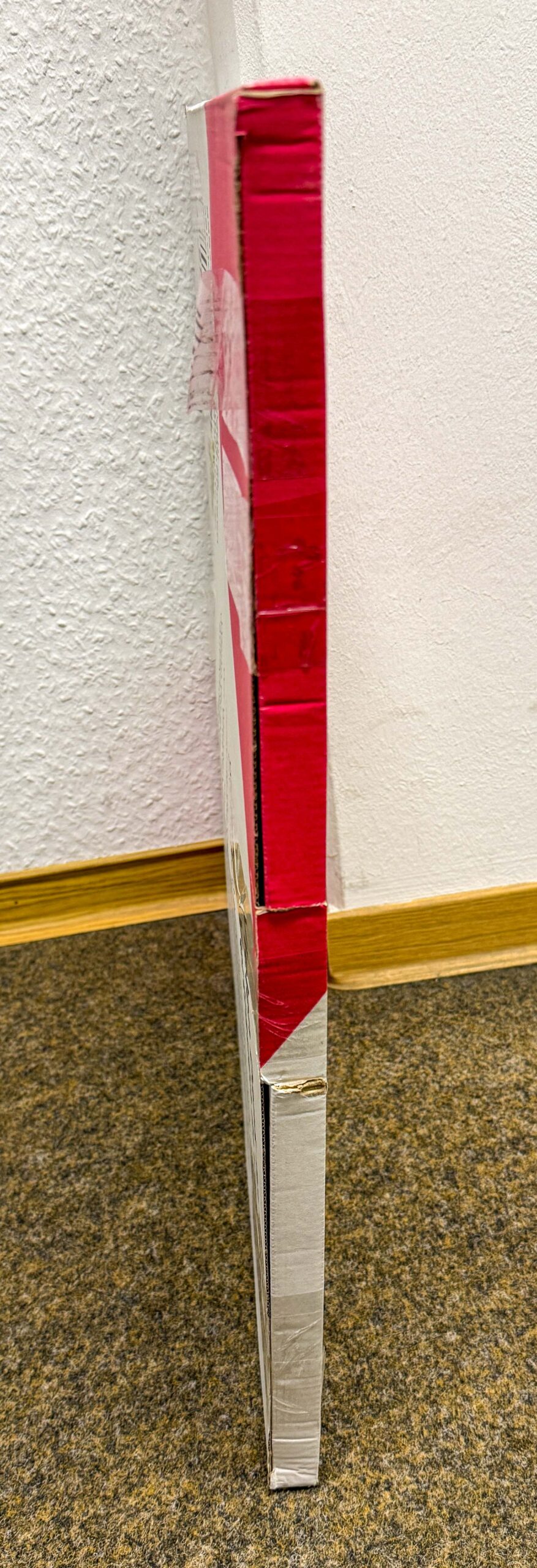 Die Warntafel ließ sich gut aus dem Karton herausnehmen. Zum Öffnen musste eine Schere verwendet werden (Klebestreifen), der Karton ist jedoch schützend über der Tasche, sodass diese nicht beschädigt werden kann. Alle Inhalte kamen vollständig an. Auch eine Gebrauchsanweisung ist vorhanden, jedoch kommt hier eine Warnung zum vorsichtigen Öffnen des Kartons zu spät – hier könnte die Überlegung erfolgen, einen kleinen Hinweis auf dem Karton zu geben.