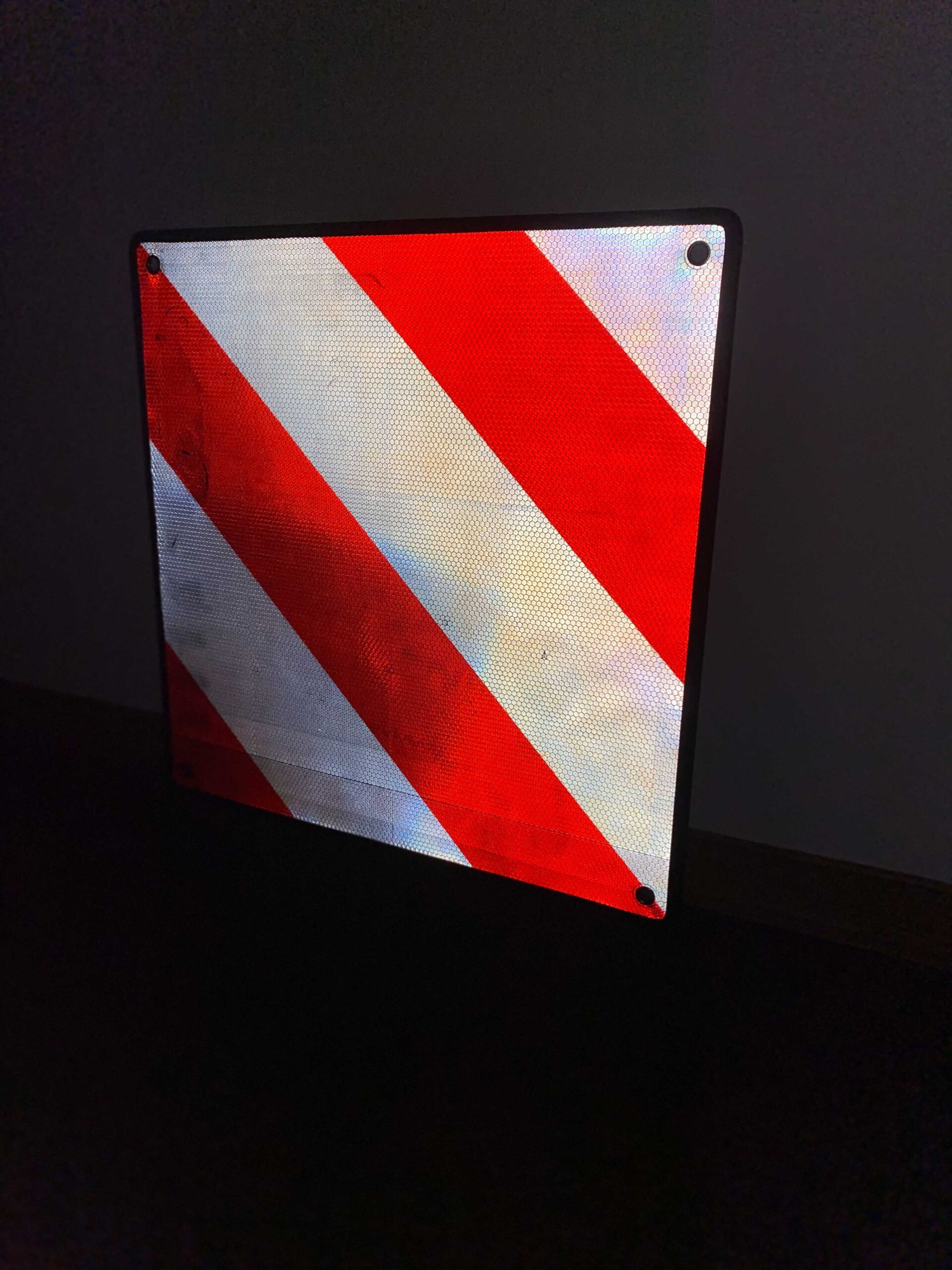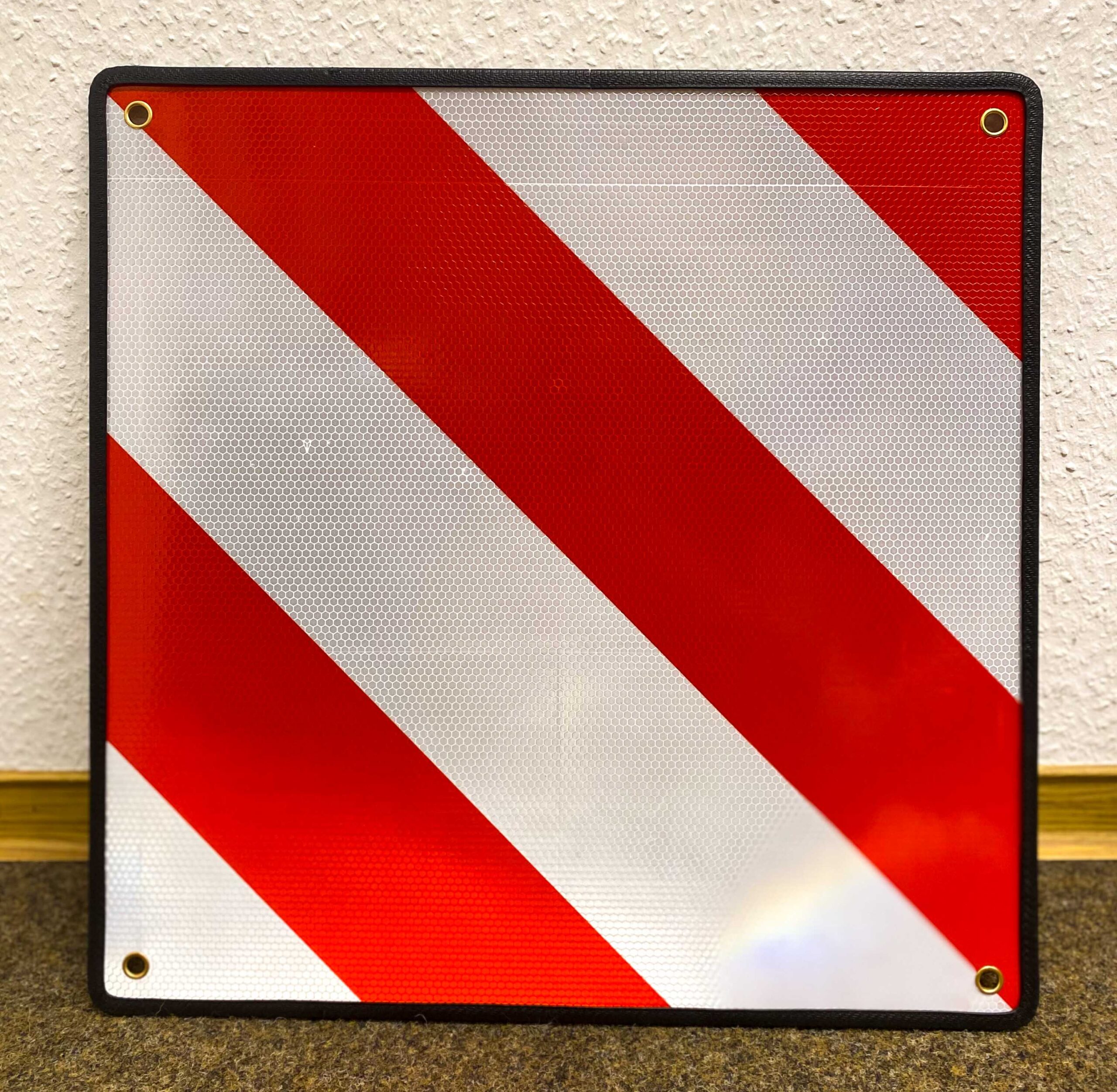 Zur Stabilität: Die Warntafel ist durch die Spanner elastisch, hat jedoch nicht zu viel Spielraum, um dadurch anderweitige Beschädigungen zu erleiden. Die Tafel lässt sich gut verbiegen, um im Falle eines Auffahrunfalls nicht zu zersplittern. Sie lässt sich danach auch wieder zurechtbiegen und behält ihre Reflexionsfähigkeit bei.