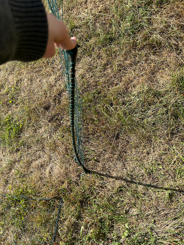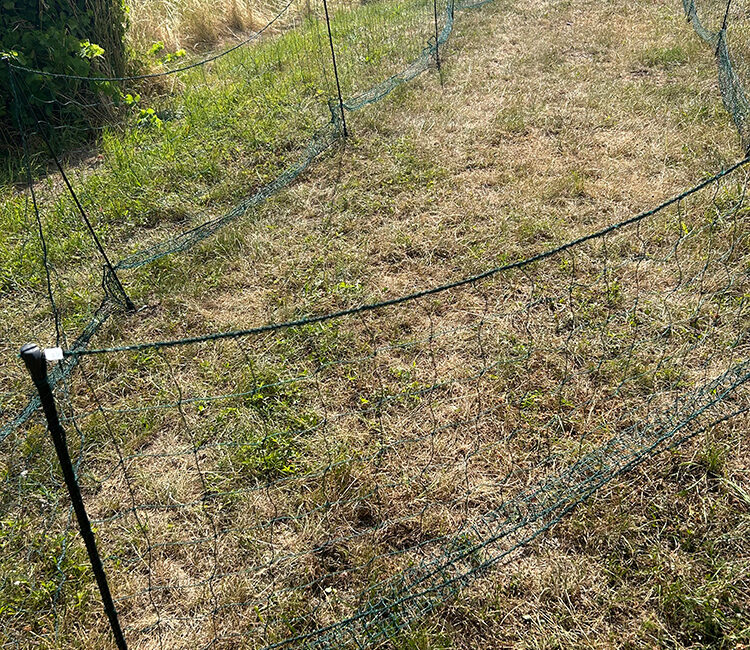Allerdings traten beim Aufbau auch Schwächen auf: Eine der Zaunstangen wurde durch einen Bruch an der Verbindungsstelle zur Erdspitze unbrauchbar. Zudem ließen sich die mitgelieferten Heringe nicht vollständig im Boden verankern. Dadurch entstand am unteren Netzrand eine Lücke, durch die kleinere Tiere leicht hindurchschlüpfen können. Auch die Gesamtstabilität des Weidezauns litt darunter, da sich das Netz nicht spannen ließ. Das mitgelieferte Zubehör erfüllt seinen Zweck nur eingeschränkt, wobei die Bodenbeschaffenheit (z. B. Erdschichten, Feuchtigkeit) eine große Rolle spielt.